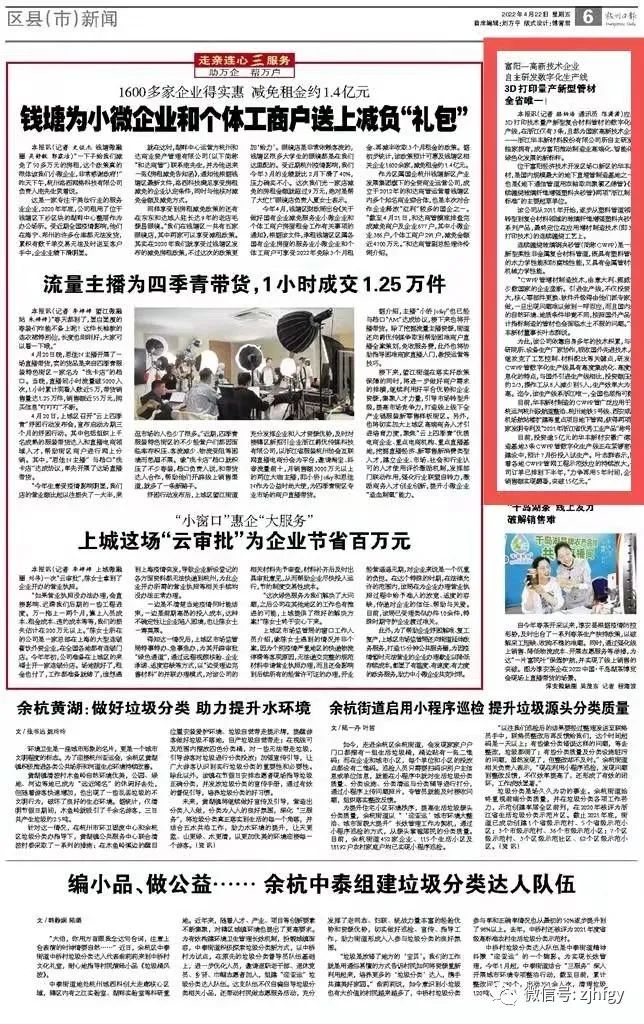 4月22日,杭州日報以“富陽一高新技術企業 自主研發數字化生產線”為題,報道我公司智能化、數字化、高端化的連續纏繞玻璃鋼夾砂管(簡稱CWFP)3D打印技術生產線。